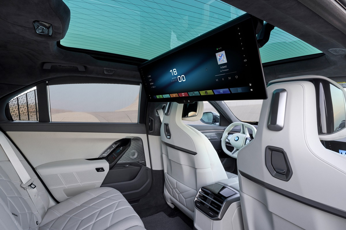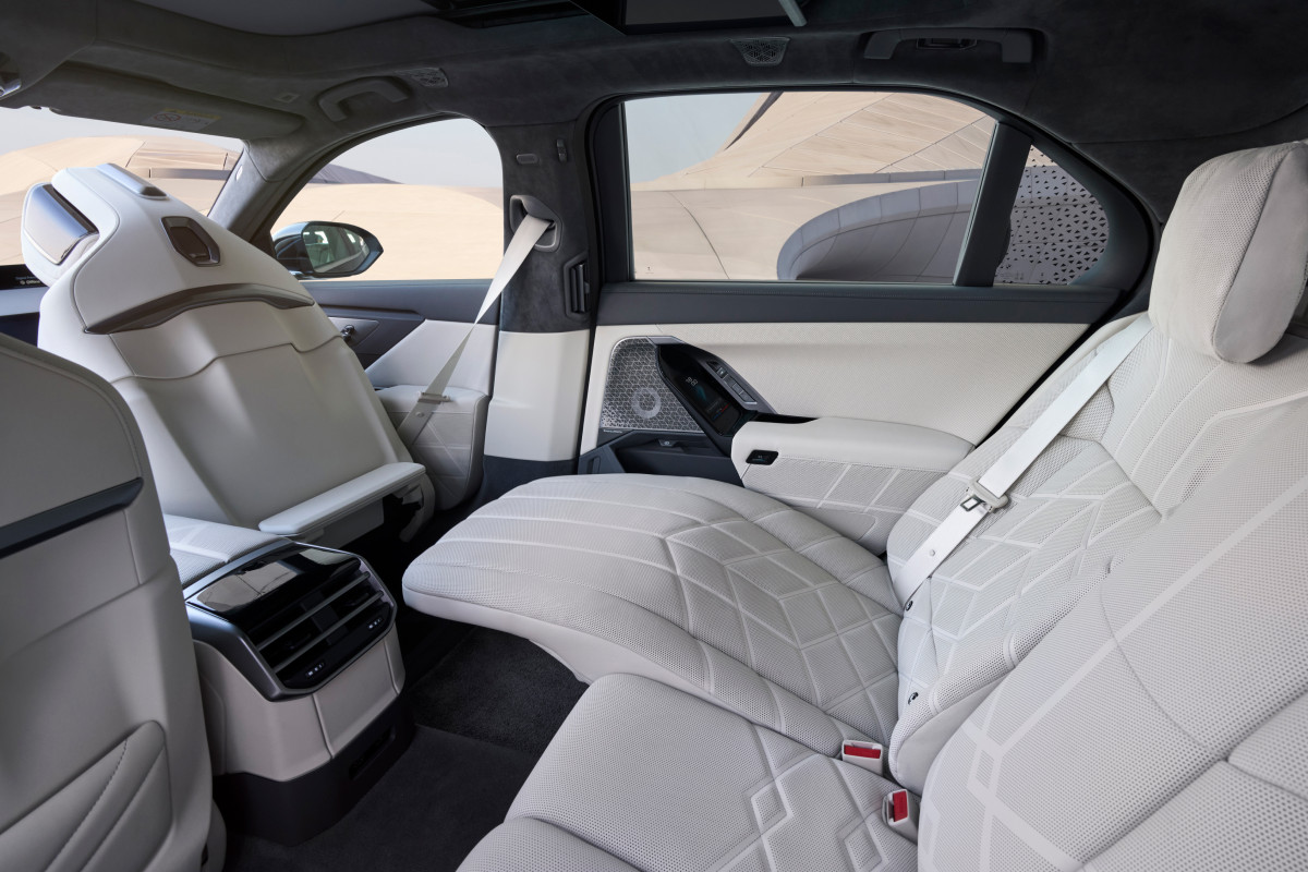 Modernizovaný rad 7 si zachováva aj voliteľnú 31,3-palcovú obrazovku BMW Theatre pre cestujúcich na zadných sedadlách. Stále má rozlíšenie 8K, ale teraz je dotyková. Túto obrazovku je možné použiť na videokonferencie, sledovanie filmov, hranie hier, zobrazenie rozhrania notebooku a ovládanie pokročilejšieho audiosystému Bowers & Wilkins s 36 reproduktormi. Za príplatok sú k dispozícii aj luxusné sedadlá Executive Lounge.