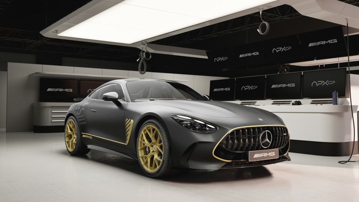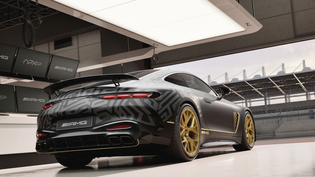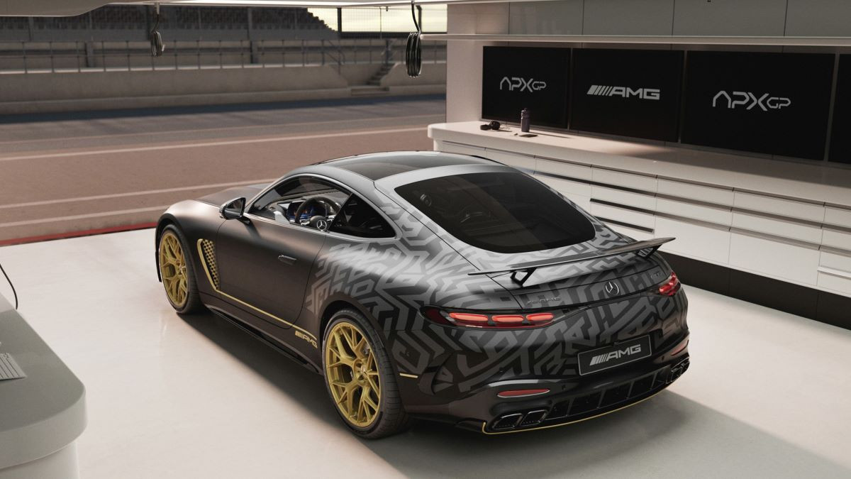 Rovnako ako vozidlá APXGP vo filme, aj Mercedes-AMG GT 63 4Matic+ APXGP kupé má špeciálny matný lak s geometrickým dizajnom vzadu. Exteriér je štedro dochutený zlatými akcentmi, ktoré sa objavili na mriežke chladiča, predných blatníkoch, prahoch dverí a difúzore. Už v základnej výbave sa špeciálna edícia môže pochváliť sadou čiernych dekorácií, predĺženou zadnou časťou z uhlíkových vlákien a pokročilým aerodynamickým paketom so spojlerom vzadu. Vzhľad dotvárajú 21-palcové zlaté kolesá.