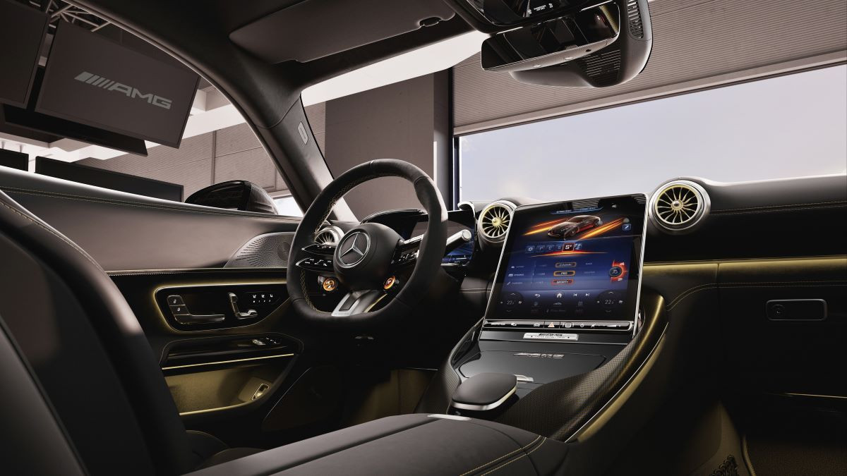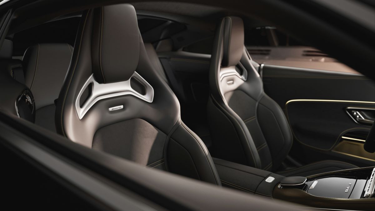 Interiér sa vyznačuje aj množstvom zlatých akcentov a dokonca aj kontúrovým osvetlením v rovnakom odtieni. Sedadlá sú vybavené priľnavými škrupinovými sedadlami AMG Performance v kombinácii kože nappa a mikrovlákna. Rovnaký materiál sa používa na potiahnutie volantu AMG Performance s označením nulovej polohy. Čierne prahové lišty zdobia logo AMG, zatiaľ čo špeciálne podlahové rohože sú zdobené výšivkou APXGP. Interiér superauta je veľkoryso zdobený dekoráciami z uhlíkových vlákien. Auto sa dodáva s originálnym krytom garáže vyrobeným z priedušného recyklovaného materiálu, ktorý zabráni tomu, aby sa z unikátneho superauta stal lapač prachu.